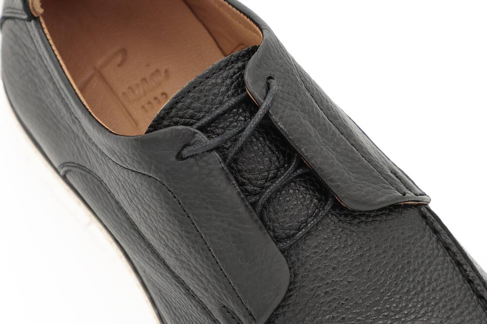 Günlük şıklığı konforla birleştiren Tuna 3817, hakiki floter deriden üretilen üst yüzeyiyle doğal bir doku sunar. Astarsız yapısı sayesinde hafif bir kullanım vadederken, taban astarı olarak kullanılan doğal deri ayağın hava almasını destekler. Hafif ve esnek TPU (Termoplastik Poliüretan) taban, şehir hayatının dinamik temposunda zemin tutuşunu artırırken, yürüyüş esnasında ayağı destekleyerek yorgunluk hissini azaltır. Bu malzeme, dayanıklılığı ve konforu bir araya getirmesiyle öne çıkar.