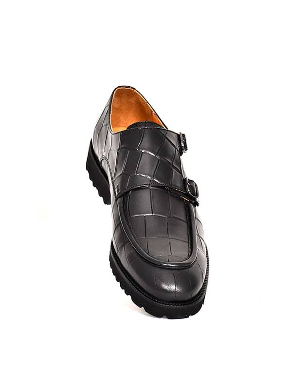 Tuna 1202 modeli, klasik ayakkabı tasarımına sofistike bir dokunuş kazandıran hakiki kroko baskı deri yüzeyiyle dikkat çeker. Parlak ve güçlü bir duruş sunan dış yüzeyin altında, iç astar ve taban astarında kullanılan doğal deri ile ayağın gün boyu hava alması sağlanır. Hafif EVA tabanı ise zemine iyi tutunur, konforlu adımlar vadeder. Modelin öne çıkan çift toka detayı ise geleneksel çizgilerle modern zarafeti bir araya getirir.