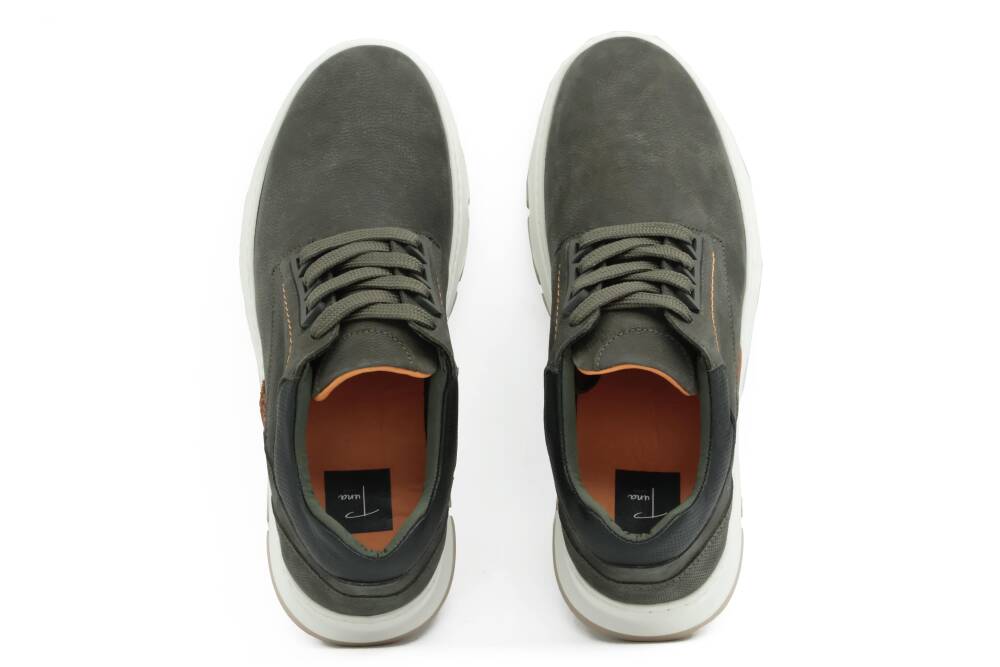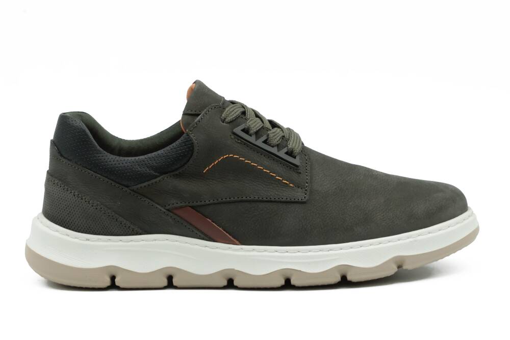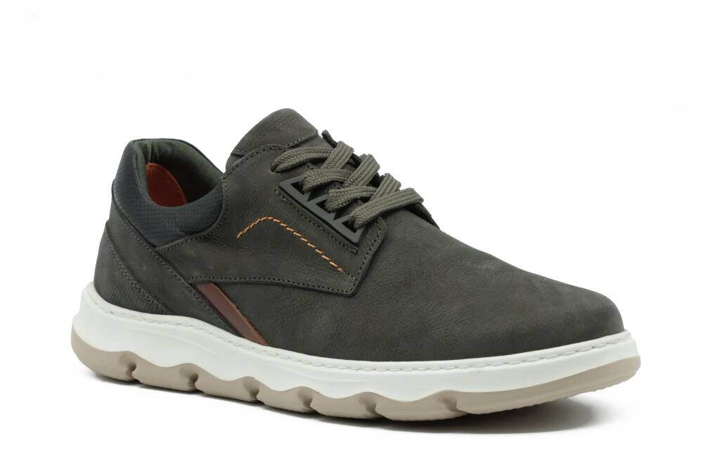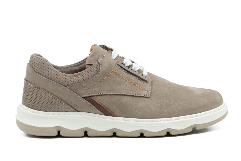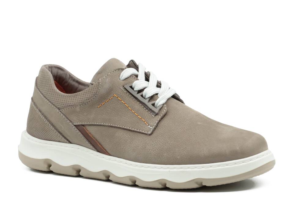 Günlük konforu şıklıkla buluşturan bu casual erkek ayakkabı, hakiki nubuk derinin doğal dokusuyla tasarlandı. Hafif EVA tabanı, yumuşak adımlar sunarken, doğal deri taban astarı ayak sağlığını destekler. İç astarında kullanılan kaliteli tekstil, nefes alabilirlik sağlar ve bağcıklı formu sayesinde ayağa tam oturur. Tam kalıp olarak üretilmiştir, günlük tempoya ayak uyduran yapısıyla dikkat çeker.