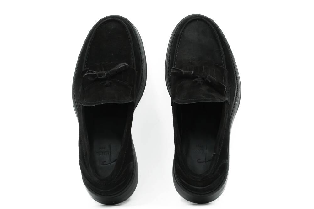 Tuna E4039 modeli, klasik loafer formunu hakiki süet derinin zarif dokusu ve dekoratif püskül detayıyla yeniden yorumluyor. Mat ve yumuşak yüzeyiyle öne çıkan süet deri, iç ve taban astarındaki doğal deri ile birleşerek gün boyu konfor sunar. EVA tabanı sayesinde ayakkabı hafiflik ve esneklik kazandırır. Bağcıksız yapısı ve tam kalıp formu ile ayağa tam oturur ve rahat bir yürüyüş deneyimi sunar.