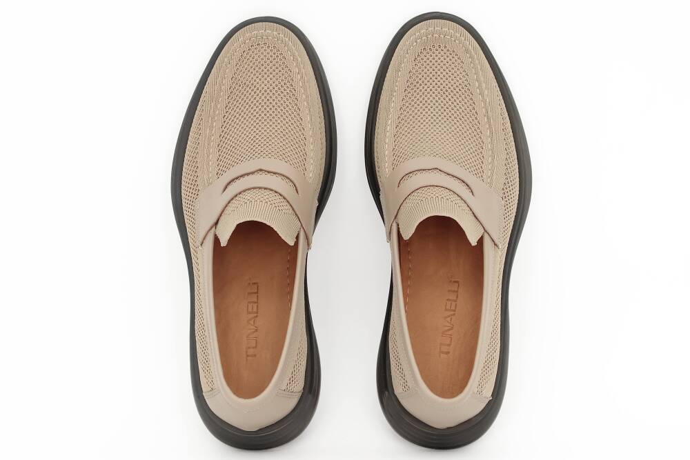 Tuna 3550 modeli, yaz aylarında hem şıklık hem konfor arayan erkekler için tasarlanmıştır. Triko örme dış yüzeyiyle ayağın nefes almasına olanak tanırken, kuşak ve arka parçalarda kullanılan deri detaylar modele zarif bir kontrast katar. Astarsız oluşu sayesinde oldukça hafif ve ferah bir kullanım sunan bu loafer modeli, doğal deri taban astarı ile ayağın doğal dengesini korur. EVA/TPU tabanı ise gün boyu destekleyici bir deneyim sağlar.